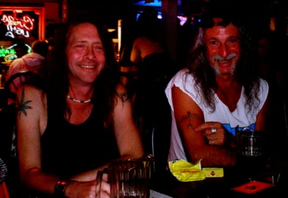 Bassplayer Tim, and Vocalist Mike discussing the "Ecstatic Value" of Mike's Tatoo